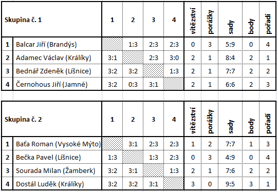 Tiskne výsledky v případě, že obě kola byla skupinovým systémem.