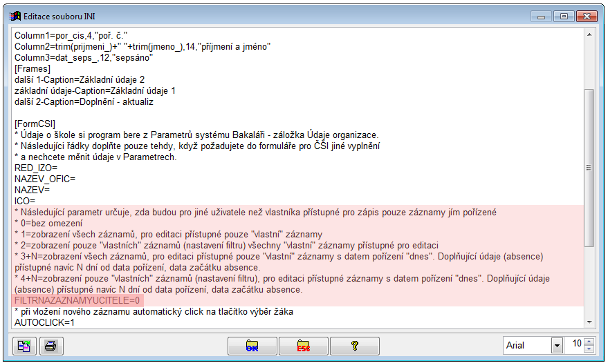 V INI souboru (nabídka Správce) lze nastavit řadu parametrů aplikace.